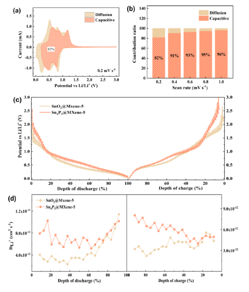 3@MXene-5電極的GITT曲線,(d) SnO
