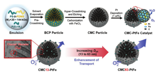 該研究工作由韓國科學技術研究院Bumjoon J. Kim和Hyunjoo Lee課題組于2021年發表在Adv. Energy Mater.期刊上。原文:Ultra-Low Pt Loaded Porous Carbon Microparticles with Controlled Channel Structure for High-Performance Fuel Cell Catalysts。