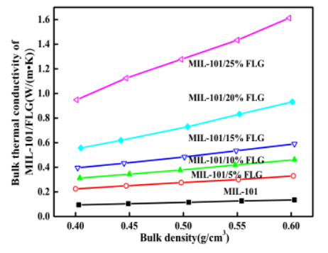 Figure 3. 體積密度對MIL-101和MIL-101/FLG復合材料熱導率的影響。