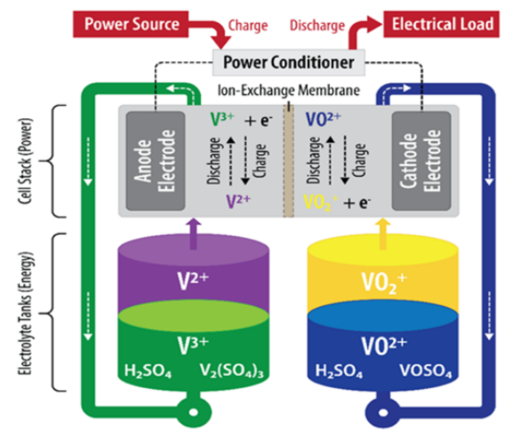 圖 1.釩液流電池系統(tǒng)的基本原理。