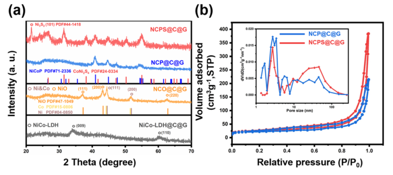 圖 2.(a)NCP@C@G和NCPS@C@G的XRD譜圖和(b)N