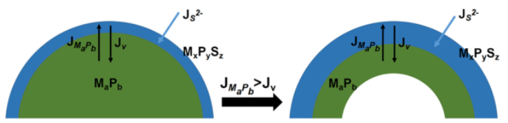 圖5.磷硫化處理過程中的Kirkendall效應示意圖。