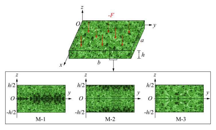 圖1. GPLRMF矩形板和不同的孔隙率分布。