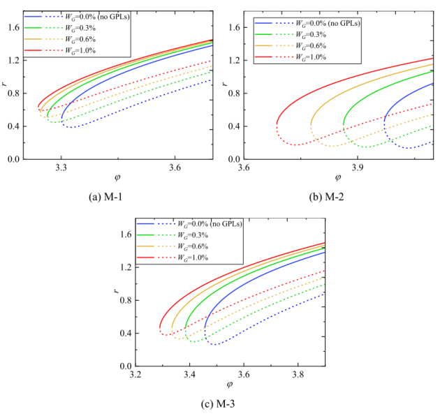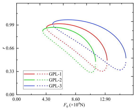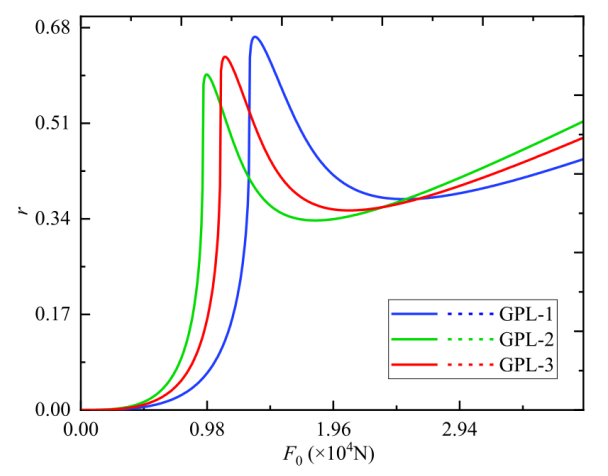 圖18. 不同GPL時次諧波共振力響應曲線。