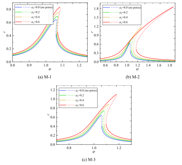 圖6. 不同孔隙率系數時主共振頻響曲線。