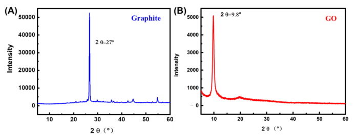 圖1. (a)石墨和(b)GO的XRD圖譜。