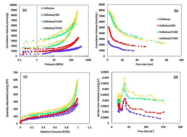 圖4. (a, b)汞-孔隙度測量法和(c, d)BET測試的原始數據。