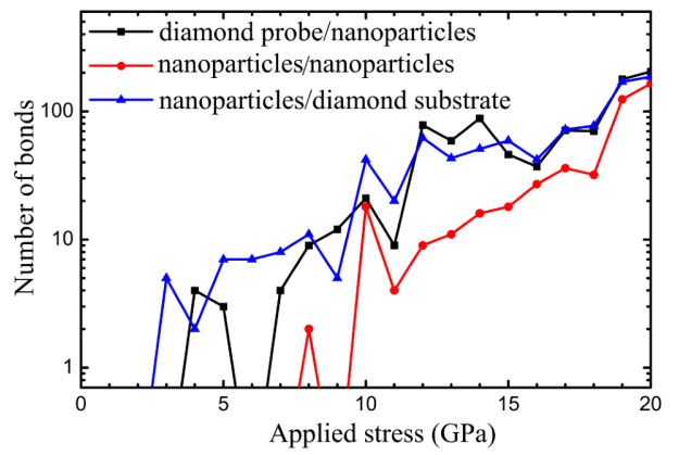 圖5. 在摩擦模擬過程中,不同基團之間產生的鍵的數量與外加應力的關系。