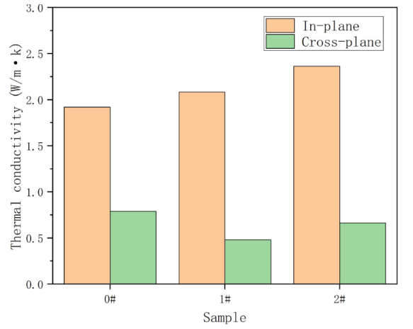本研究采用刮涂法和絲網印刷法制備石墨烯改性織物,研究其導熱性能和熔融金屬飛濺加熱性能。討論了涂層方式對其熱性能的影響。刮涂織物的穿透深度較低,面內和橫切面熱導率分別達到 2.08 W/(m·K) 和 0.48 W/(m·K),這意味著其各向異性值為4.3,而對照織物的各向異性值為2.4。熔融金屬飛濺撞擊后的升高溫度從27°C到19°C下降約30%。關于絲網印刷樣品,面內與橫切面的熱導率比值為3.5,溫升為25°C。