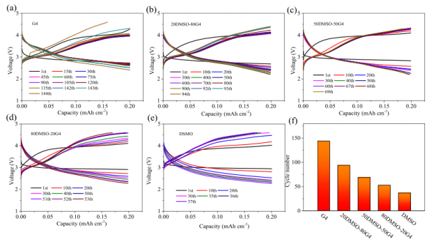 -2。 (f) G4、DMSO 和二元溶劑中循環(huán)數(shù)的比較。