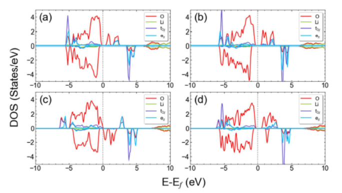 6 在室溫下是穩定的(由 HSE06 計算的帶隙為 3.19 eV,由PBE+U 計算的帶隙為 1.82 eV),并闡明了抑制氧氣釋放所涉及的化學和結構效應 在這個陰極。 在整個脫鋰過程中,只有 O