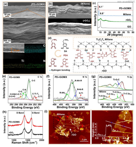 圖2 PD-rGOMX薄膜的結構表征與化學分析。