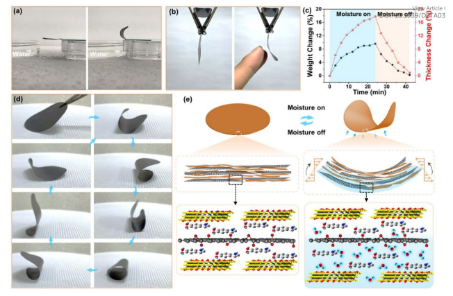 相關科研成果由南京理工大學化學化工學院Dongping Sun和Lei Zhang等人于2022年發表在Journal of Materials Chemistry A (DOI: 10.1039/D2TA03756D)上。原文:Tailoring MXene-based Film as a Moisture-Responsive Actuator for Continuous Energy Conversion。