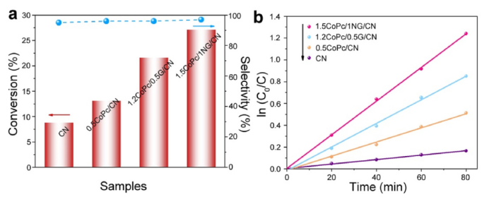4異質結醇選擇性有氧氧化光活性的關鍵因素。在此,我們成功地制備了N-摻雜石墨烯調制的CoPc/g-C
