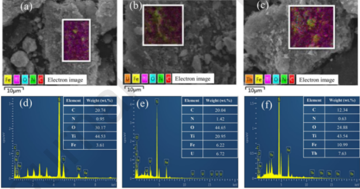 2-PDA/OA),并用于去除模擬放射性廢水中的放射性核素。利用先進的光譜技術對表面功能化的MXenes的理化性質進行了研究,同時通過批量實驗考察了pH值、接觸時間和共存污染物對U(VI)/Th(IV)富集的影響。實驗測定Fe
