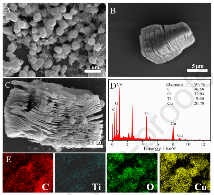 xO-MWCNTs-COOH/MXene的SEM圖像。(D) nano-Cu