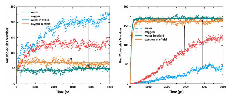 2O膜之間的氫鍵相互作用。在電場作用下加速解吸會使膜上有更多的吸附位點,從而促進H