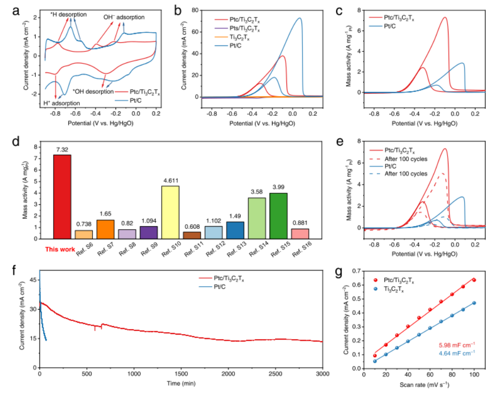 Pt−1的高質量活性,這是迄今為止報道的pt基電催化劑的最高值,即使在3000分鐘的使用后,Ptc/Ti