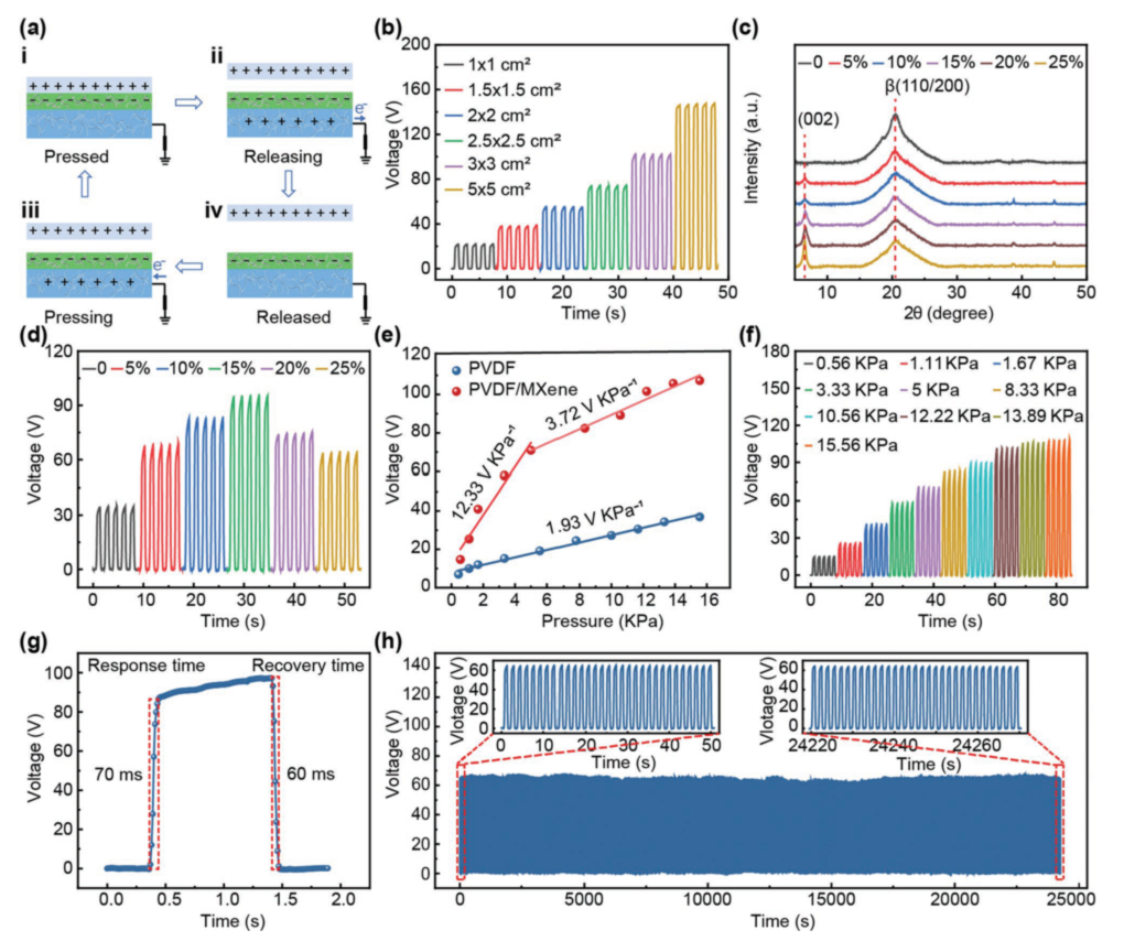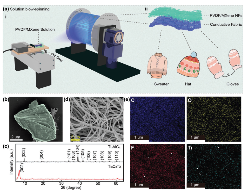 2)可定制摩擦電熱納米發(fā)生器(LT-TENG),具有操作簡單、面積可放大、生產(chǎn)效率高的優(yōu)點。制備的LT-TENG由聚偏氟乙烯(PVDF)/MXene (Ti