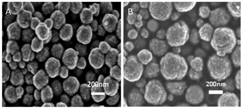圖6. (A) NIPs的SEM圖像;(B) MIPs的SEM圖像。