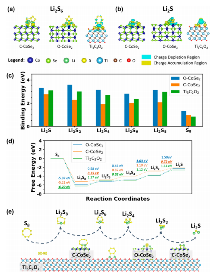 2上的電荷密度差圖。(c)聚硫化物鋰與O-CoSe