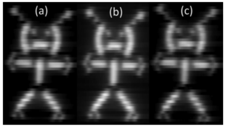 圖7.在 PET 上分別以(a)400,(b)500和(c)1000nm 的波長用9通道 PbS QD/石墨烯混合傳感器陣列拍攝的圖像。