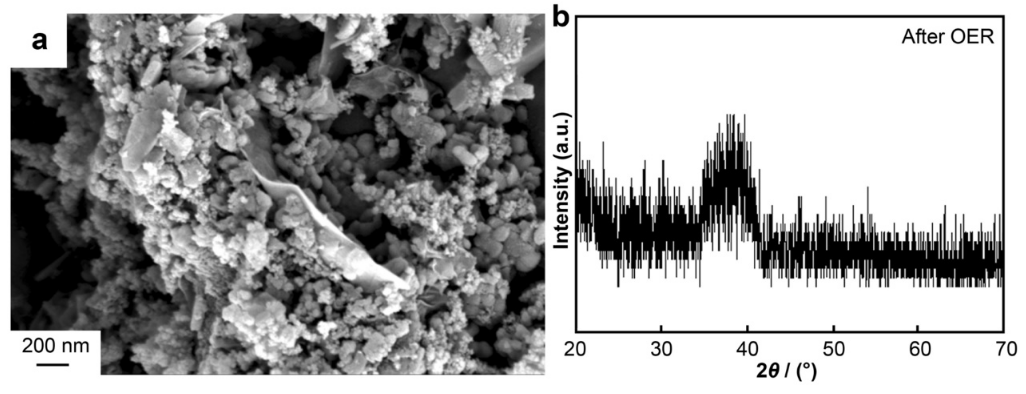 -1。為了探索活性位點及催化中心,在OER反應前后對催化劑的組成、相和表面氧化態進行了對比分析。結果表明,在OER反應后,硫化鐵鎳被氧化,反應后的材料變成了無定型態Ni-Fe氧化物/氫氧化,它們很可能作為催化中心在OER中起著重要的作用。而且,在兩電極全解水體系中,(Fe
