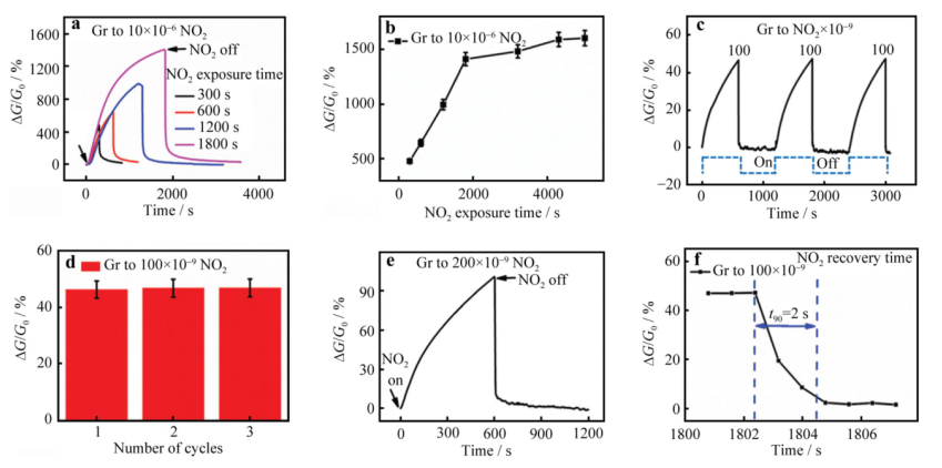 2傳感。RGO的超疏水性排斥水分子,吸收NO