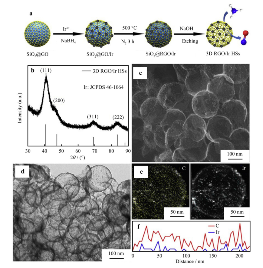 a三維RGO/Ir HSs合成示意圖; 三維RGO/Ir HSs的