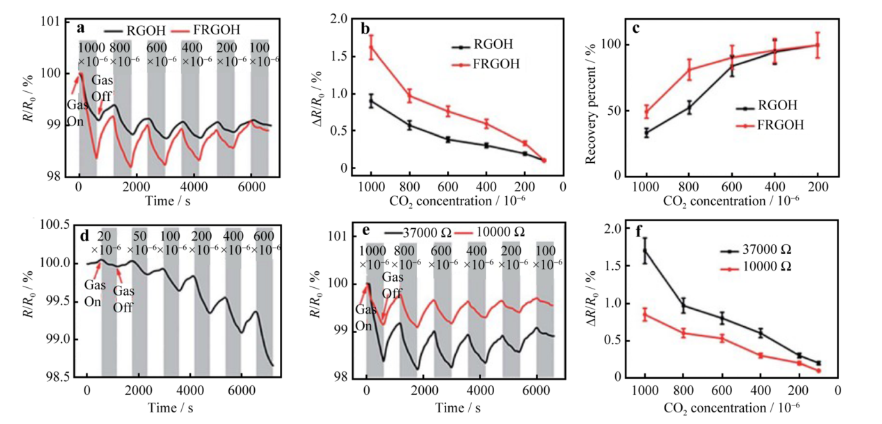 e 電阻分別為37,000和10,000 W的FRGOH傳感器暴露于不同CO