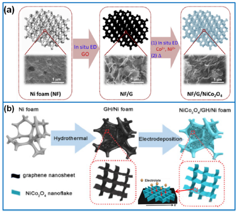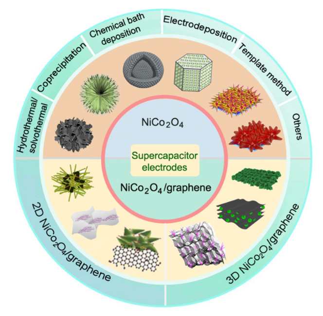 4/石墨烯復(fù)合材料分為二維(2D)復(fù)合材料和三維(3D)復(fù)合材料,并總結(jié)了其設(shè)計(jì)原理、微觀結(jié)構(gòu)及其在超級(jí)電容器中的應(yīng)用性能。最后,總結(jié)了NiCo