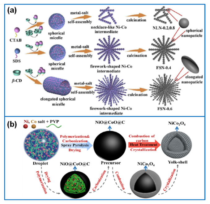圖5. (a)軟模板對(duì)顯微結(jié)構(gòu)的影響。(b)分層蛋黃殼NiCo