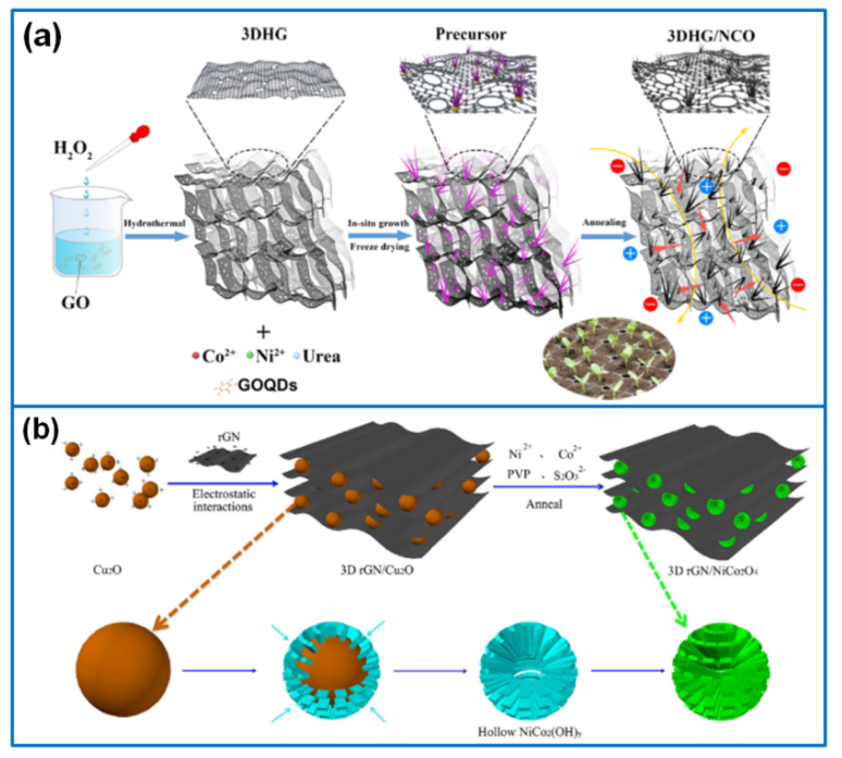 圖8. (a) 3DHG/NCO復(fù)合材料的合成。 (b) 3D rGN/ NiCo