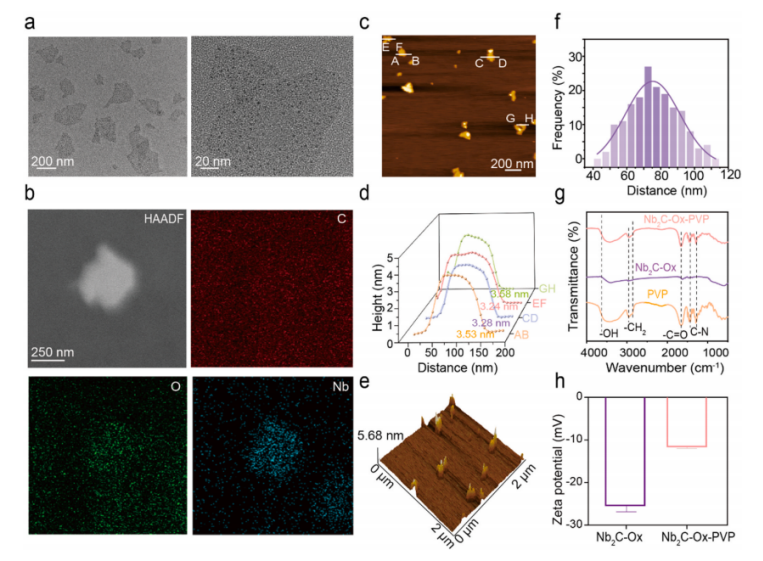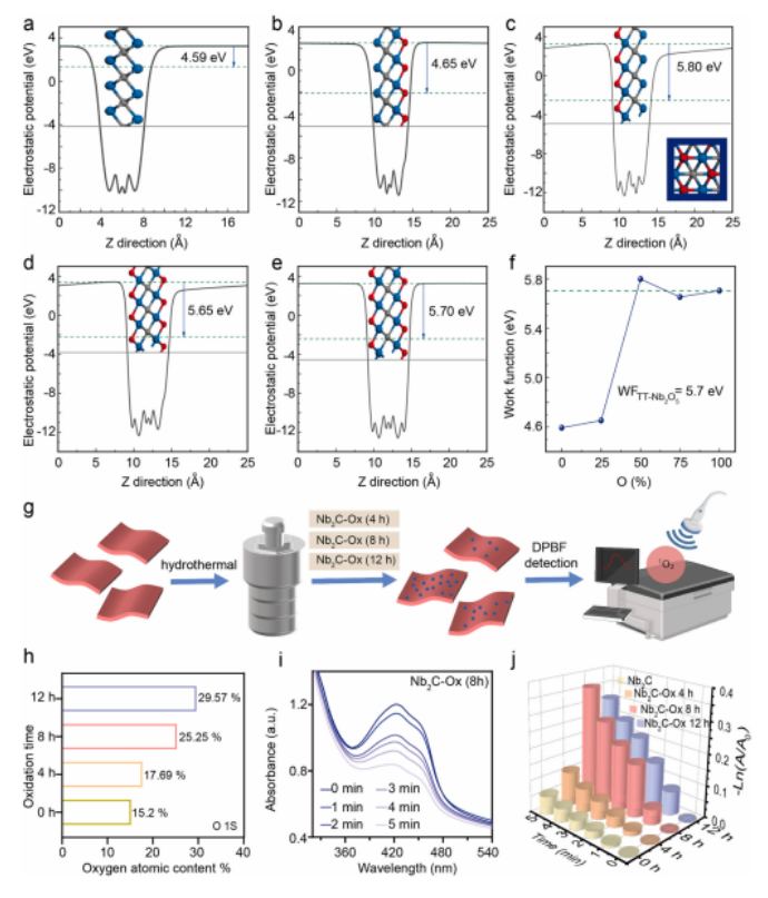 圖3 具有自生高效肖特基結的Nb2C MXene衍生聲敏劑的表征。