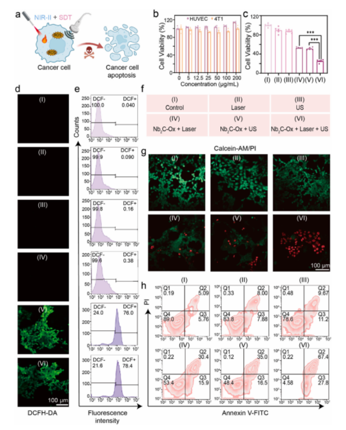 圖5 Nb2C-Ox的體外抗腫瘤性能。