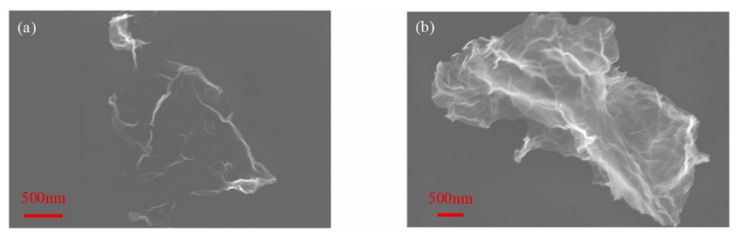 Fig5. (a) rGO 和 (b) PDA-rGO 的 SEM 圖像。