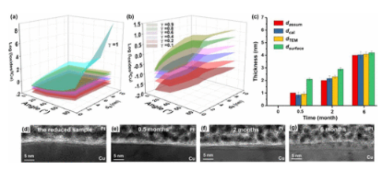 TEM)導出的界面氧化物層厚度對曝光時間的依賴性;(d) 還原樣本;(e) 暴露于空氣中0.5個月的樣品;(f) 暴露于空氣中2個月的樣品;(g) 樣品暴露在空氣中6個月。