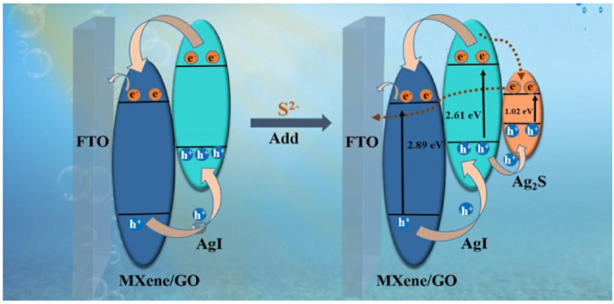 圖1. MGA1:8, AgI, Ag2S的能帶結(jié)構(gòu)示意圖和可能的電子轉(zhuǎn)移機制。