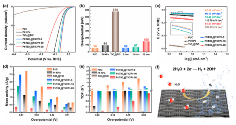2@TiC/Pt樣品在1.0 M KOH中的HER性能。