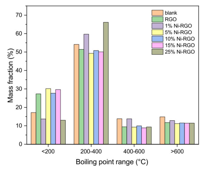 圖8. 不同催化劑時生物油的沸點范圍分布。