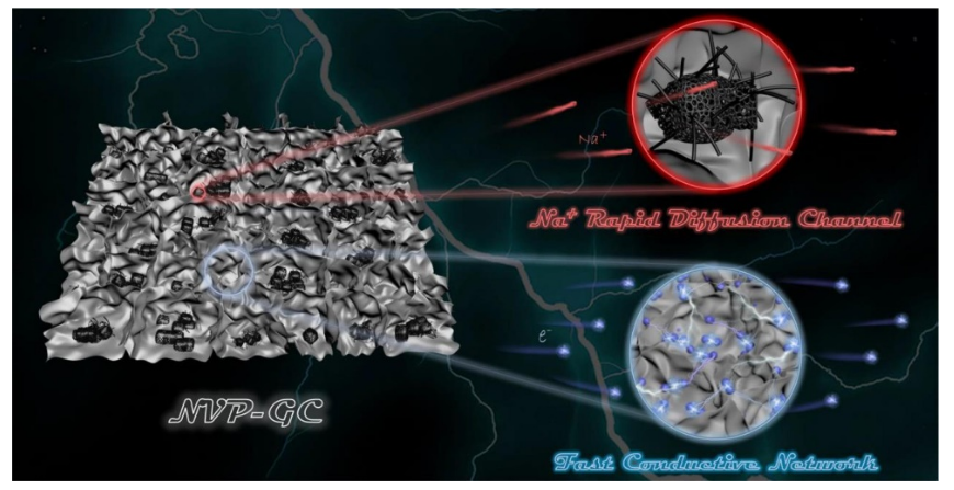 3 (NVP)的本征電導率限制了其進一步應用。本文提出了一種以還原氧化石墨烯(rGO)和納米纖維素為額外碳源的原位合成多孔NVP的協同策略。具體而言,氧化石墨烯的碳化形成了高度石墨化的還原氧化石墨烯襯底,有效地阻礙了NVP顆粒的團聚。同時,納米纖維素炭化生成無序薄碳涂層,與還原氧化石墨烯襯底構建相互連接的導電網絡。雙碳涂層網絡顯著提高了電子導電性,增強了動力學特性。此外,活性NVP晶粒在還原氧化石墨烯上外延均勻生長,形成多孔結構,有利于活性物質的進一步利用。樣品中的介孔可以作為Na