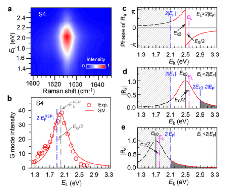 石墨烯是通過調整摻雜或激光激發能量來研究量子干涉路徑相干性的理想平臺。后者產生拉曼激發曲線,可以直接了解中間電子激發的壽命,因此可以直接了解迄今為止仍然難以捉摸的量子干涉。在這里,通過調整摻雜高達 1.05 eV 的石墨烯中的激光激發能量來控制拉曼散射路徑。G模式的拉曼激發曲線表明其位置和半峰全寬與摻雜呈線性關系。摻雜增強的電子-電子相互作用支配拉曼散射路徑的壽命并減少拉曼干擾。這將為摻雜石墨烯、納米管和拓撲絕緣體的工程量子路徑提供指導。