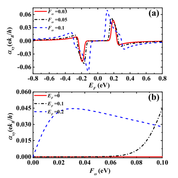 圖5. (a)不同Fω下Nernst系數(shù)αxyEF的關系。(b) 不同EFαxyFω的關系。