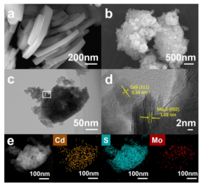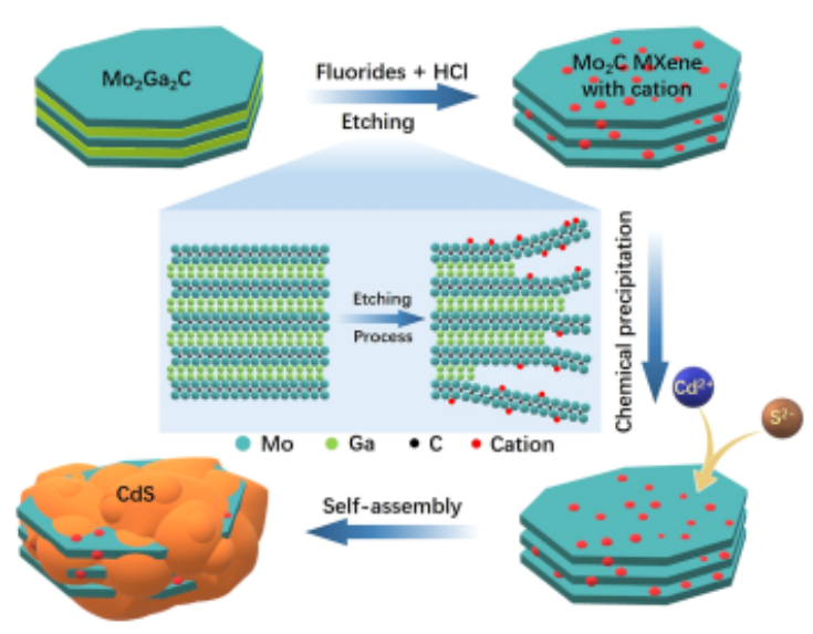 圖1. Mo2C的制備工藝及微觀結構MXene和CdS/Mo
