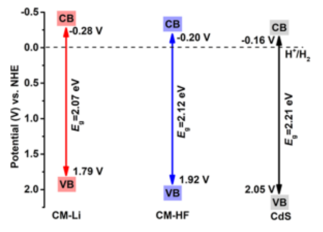 圖8. CMLi、CM-HF和CdS的能帶結構示意圖。