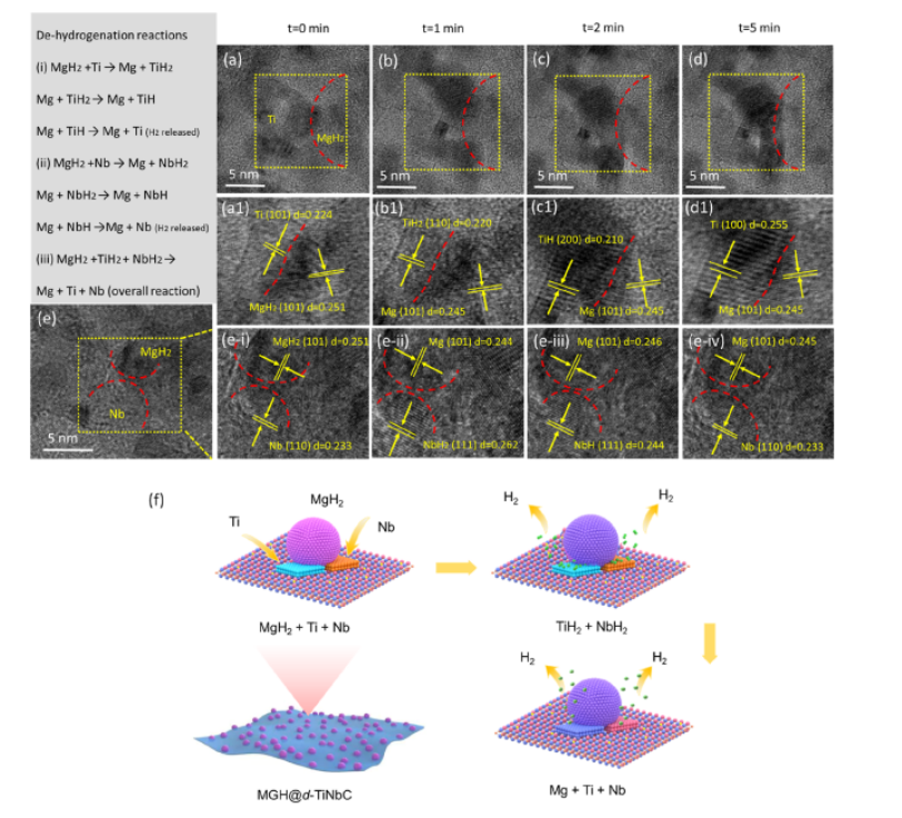圖6 原位HRTEM結果及整體脫氫反應MGH@d-TiNbCT