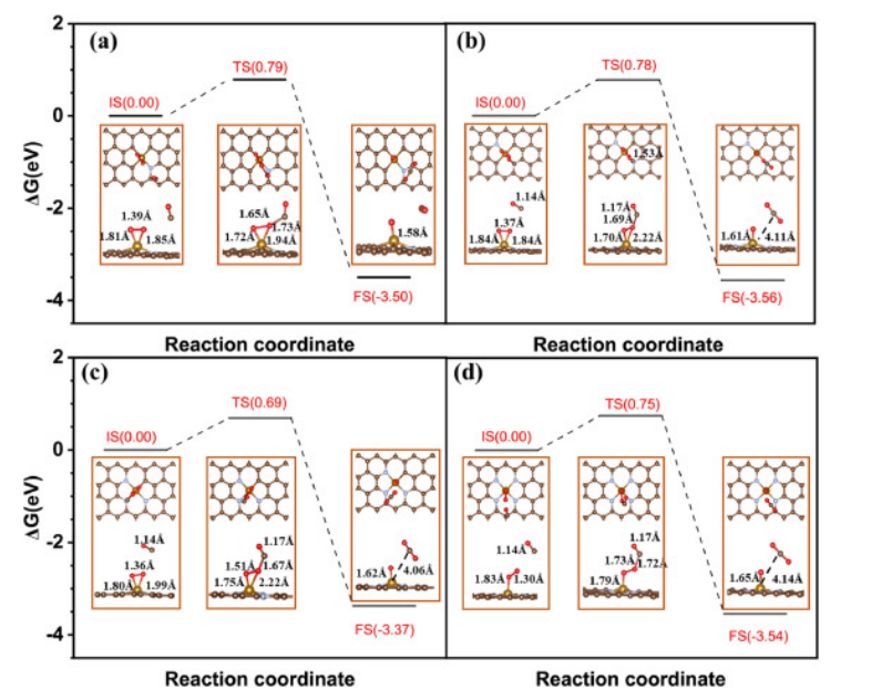 相關研究成果由中國科學技術大學國家同步輻射實驗室Chunlan Qin等人于2023年發表在Molecular Catalysis (https://doi.org/10.1016/j.mcat.2023.113103 )上。原文:Theoretical study on the reaction kinetics of CO oxidation by nitrogen-doped graphene catalysts with different ligand structures。