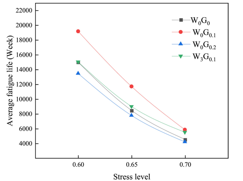 圖8. 應(yīng)力水平與平均疲勞壽命的關(guān)系。