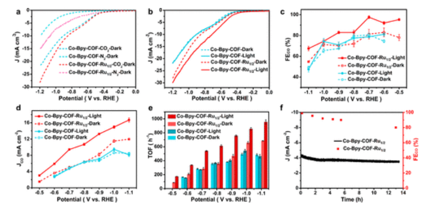 2RR產(chǎn)生CO。最佳Co-BpyCOF-Ru