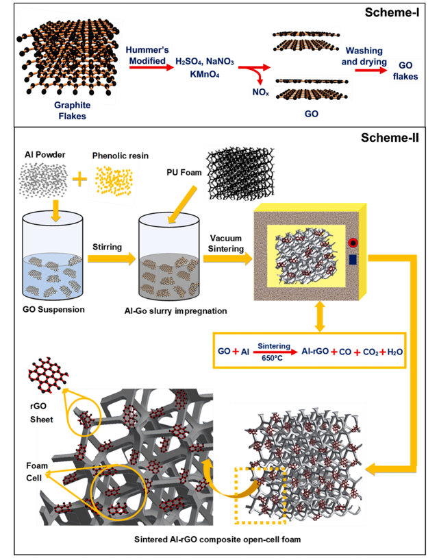 圖1. GO和Al-rGO復合泡沫的制備過程示意圖。